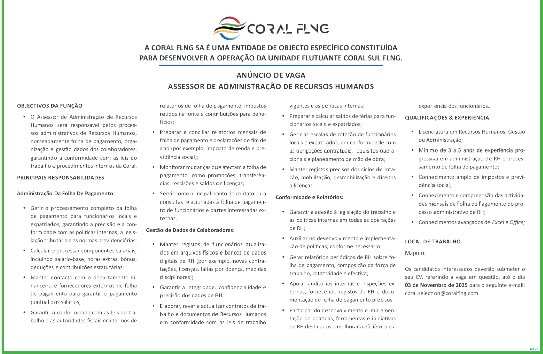 questão, até o dia 03 de Novembro de 2025 para o seguinte e-mail: coral.selection@coralflng.com