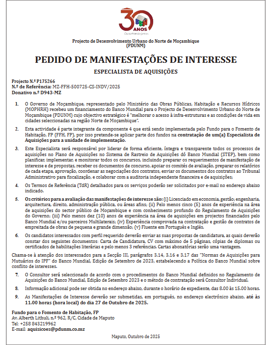 E-mail: aquisicoes@pdunm.co.mz