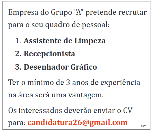 Empresa do Grupo “A” pretende recrutar para o seu quadro de pessoal: