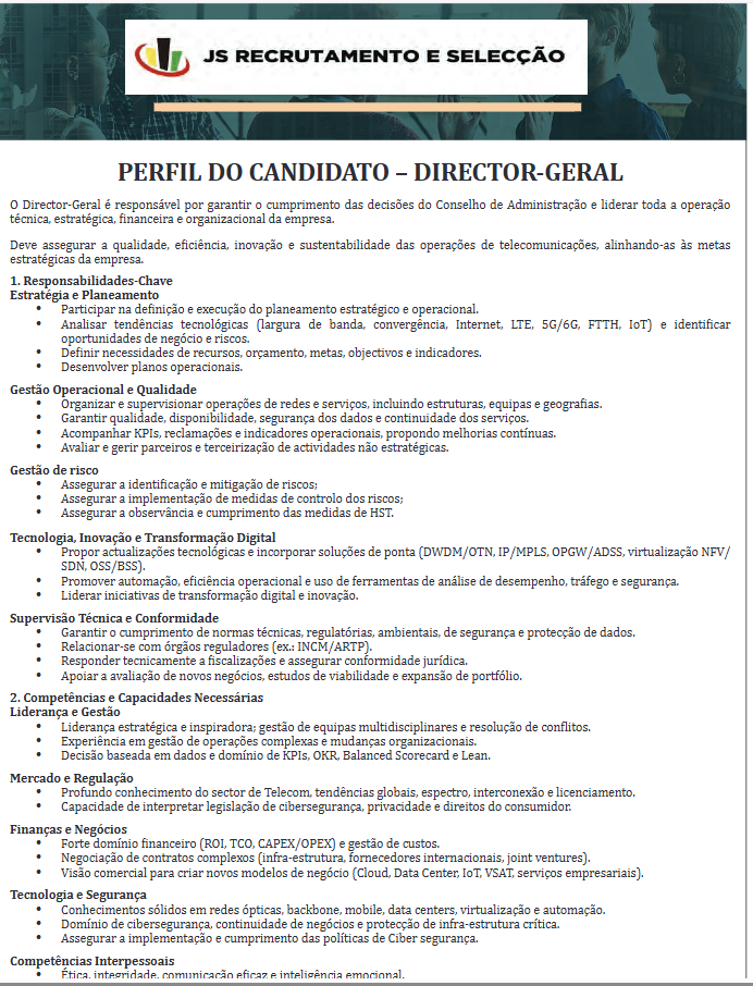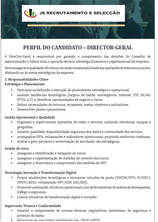 PERFIL DO CANDIDATO – DIRECTOR-GERAL