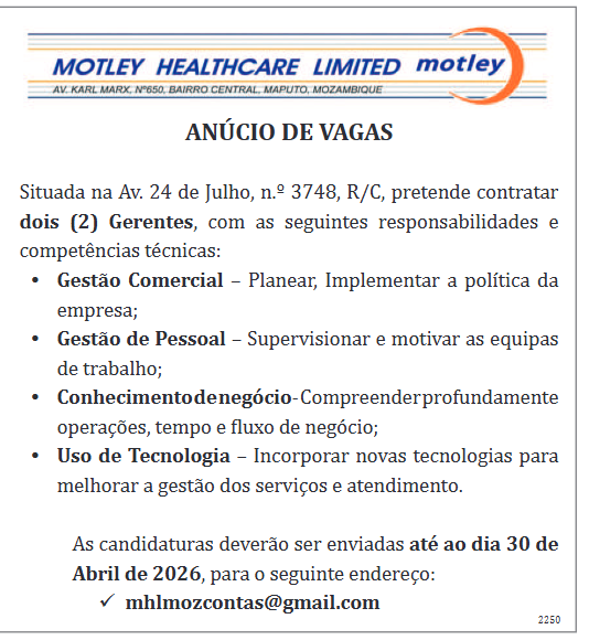 As candidaturas deverão ser enviadas até ao dia 30 de Abril de 2026, para o seguinte endereço: mhlmozcontas@gmail.com