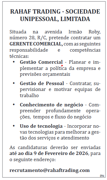 o seguinte endereço: recrutamento@rahaftrading.com